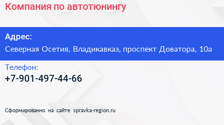 Компания по автотюнингу по адресу Северная Осетия, Владикавказ, проспект Доватора, 10а в дальнейшем Организация, размещена в следующих категориях: