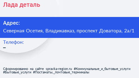 Лада деталь по адресу Северная Осетия, Владикавказ, проспект Доватора, 2а/1 в дальнейшем Организация, размещена в следующих категориях: