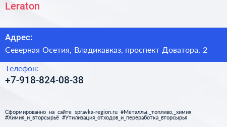 Leraton по адресу Северная Осетия, Владикавказ, проспект Доватора, 2 в дальнейшем Организация, размещена в следующих категориях: