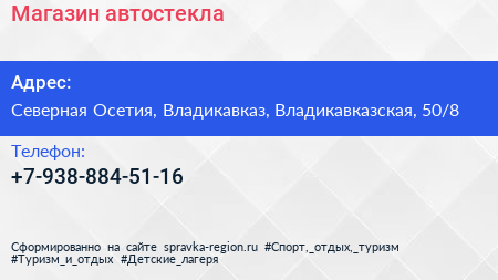 Магазин автостекла по адресу Северная Осетия, Владикавказ, Владикавказская, 50/8 в дальнейшем Организация, размещена в следующих категориях: