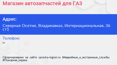 Магазин автозапчастей для ГАЗ по адресу Северная Осетия, Владикавказ, Интернациональная, 36 ст1 в дальнейшем Организация, размещена в следующих категориях: