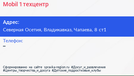 Адрес: Северная Осетия, Владикавказ, Владивостокская, 3Б