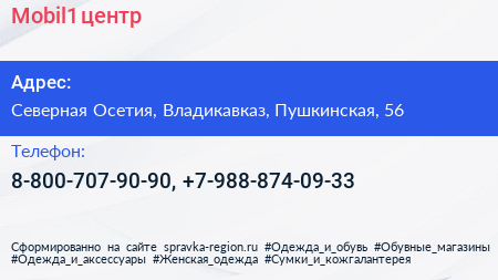 Mobil1, центр по адресу Северная Осетия, Владикавказ, Пушкинская, 56 в дальнейшем Организация, размещена в следующих категориях: