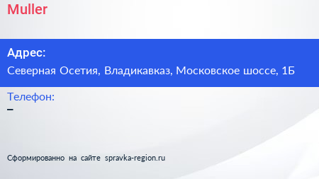 Muller по адресу Северная Осетия, Владикавказ, Московское шоссе, 1Б в дальнейшем Организация, размещена в следующих категориях: