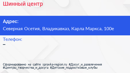 Шинный центр по адресу Северная Осетия, Владикавказ, Карла Маркса, 100е в дальнейшем Организация, размещена в следующих категориях: