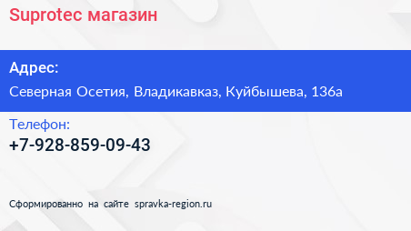 Suprotec, магазин по адресу Северная Осетия, Владикавказ, Куйбышева, 136а в дальнейшем Организация, размещена в следующих категориях: