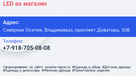 LED`as, магазин по адресу Северная Осетия, Владикавказ, проспект Доватора, 108 в дальнейшем Организация, размещена в следующих категориях: