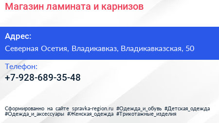 Магазин ламината и карнизов по адресу Северная Осетия, Владикавказ, Владикавказская, 50 в дальнейшем Организация, размещена в следующих категориях: