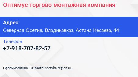 Оптимус, торгово-монтажная компания по адресу Северная Осетия, Владикавказ, Астана Кесаева, 44 в дальнейшем Организация, размещена в следующих категориях: