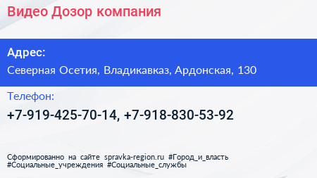 Видео-Дозор, компания по адресу Северная Осетия, Владикавказ, Ардонская, 130 в дальнейшем Организация, размещена в следующих категориях: