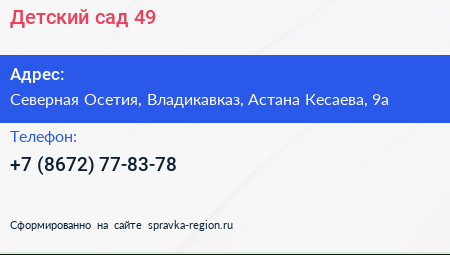 Детский сад №49 по адресу Северная Осетия, Владикавказ, Астана Кесаева, 9а в дальнейшем Организация, размещена в следующих категориях:
