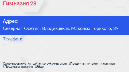 Гимназия №28 по адресу Северная Осетия, Владикавказ, Максима Горького, 39 в дальнейшем Организация, размещена в следующих категориях: