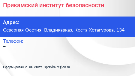 Прикамский институт безопасности по адресу Северная Осетия, Владикавказ, Коста Хетагурова, 134 в дальнейшем Организация, размещена в следующих категориях: