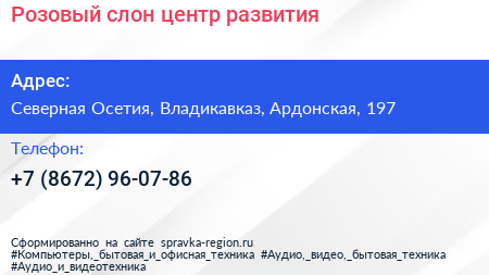 Розовый слон, центр развития по адресу Северная Осетия, Владикавказ, Ардонская, 197 в дальнейшем Организация, размещена в следующих категориях: