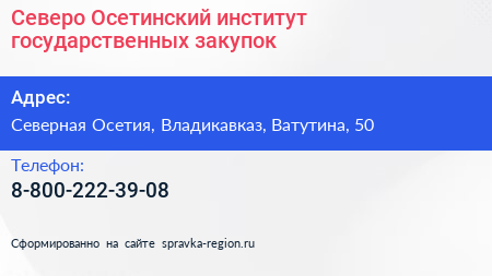 Северо-Осетинский институт государственных закупок по адресу Северная Осетия, Владикавказ, Ватутина, 50 в дальнейшем Организация, размещена в следующих категориях: