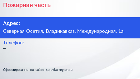 Пожарная часть по адресу Северная Осетия, Владикавказ, Международная, 1а в дальнейшем Организация, размещена в следующих категориях: