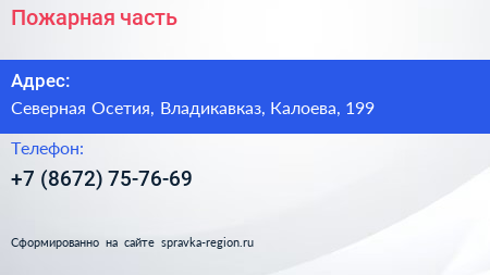 Пожарная часть по адресу Северная Осетия, Владикавказ, Калоева, 199 в дальнейшем Организация, размещена в следующих категориях: