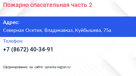 Пожарно-спасательная часть №2 по адресу Северная Осетия, Владикавказ, Куйбышева, 75а в дальнейшем Организация, размещена в следующих категориях: