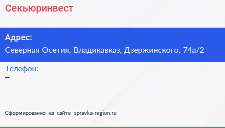 Секьюринвест по адресу Северная Осетия, Владикавказ, Дзержинского, 74а/2 в дальнейшем Организация, размещена в следующих категориях: