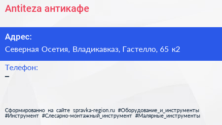 Antiteza, антикафе по адресу Северная Осетия, Владикавказ, Гастелло, 65 к2 в дальнейшем Организация, размещена в следующих категориях: