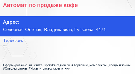 Автомат по продаже кофе по адресу Северная Осетия, Владикавказ, Гугкаева, 41/1 в дальнейшем Организация, размещена в следующих категориях: