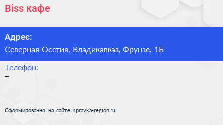 Biss, кафе по адресу Северная Осетия, Владикавказ, Фрунзе, 1Б в дальнейшем Организация, размещена в следующих категориях: