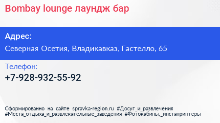 Bombay lounge, лаундж-бар по адресу Северная Осетия, Владикавказ, Гастелло, 65 в дальнейшем Организация, размещена в следующих категориях: