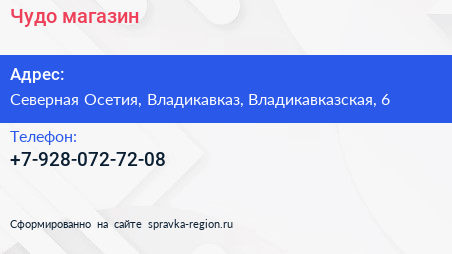 Чудо, магазин по адресу Северная Осетия, Владикавказ, Владикавказская, 6 в дальнейшем Организация, размещена в следующих категориях: