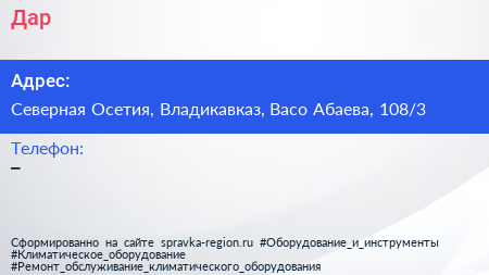 Дар по адресу Северная Осетия, Владикавказ, Васо Абаева, 108/3 в дальнейшем Организация, размещена в следующих категориях:
