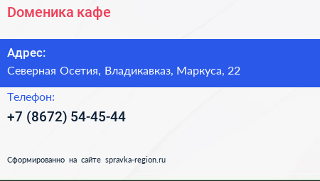 Dоменика, кафе по адресу Северная Осетия, Владикавказ, Маркуса, 22 в дальнейшем Организация, размещена в следующих категориях: