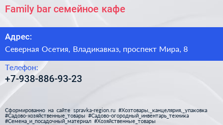 Family bar, семейное кафе по адресу Северная Осетия, Владикавказ, проспект Мира, 8 в дальнейшем Организация, размещена в следующих категориях: