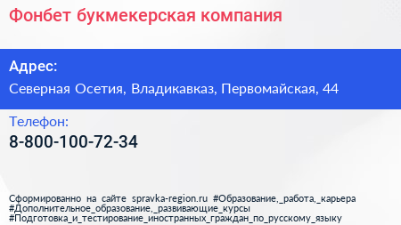 Фонбет, букмекерская компания по адресу Северная Осетия, Владикавказ, Первомайская, 44 в дальнейшем Организация, размещена в следующих категориях: