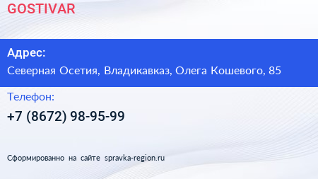 GOSTIVAR по адресу Северная Осетия, Владикавказ, Олега Кошевого, 85 в дальнейшем Организация, размещена в следующих категориях: