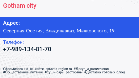 Gotham city по адресу Северная Осетия, Владикавказ, Маяковского, 19 в дальнейшем Организация, размещена в следующих категориях: