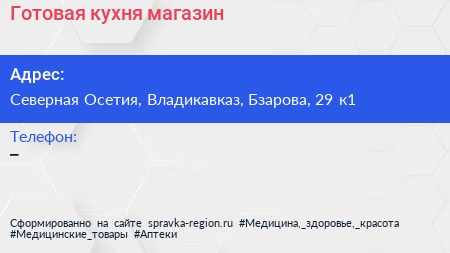 Готовая кухня, магазин по адресу Северная Осетия, Владикавказ, Бзарова, 29 к1 в дальнейшем Организация, размещена в следующих категориях: