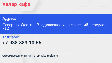Халар, кафе по адресу Северная Осетия, Владикавказ, Керамический переулок, 4 к12 в дальнейшем Организация, размещена в следующих категориях: