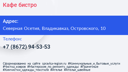 Кафе-бистро по адресу Северная Осетия, Владикавказ, Островского, 10 в дальнейшем Организация, размещена в следующих категориях: