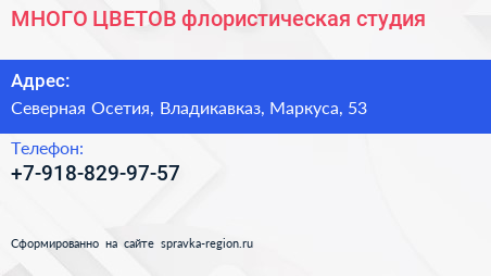 МНОГО ЦВЕТОВ, флористическая студия по адресу Северная Осетия, Владикавказ, Маркуса, 53 в дальнейшем Организация, размещена в следующих категориях: