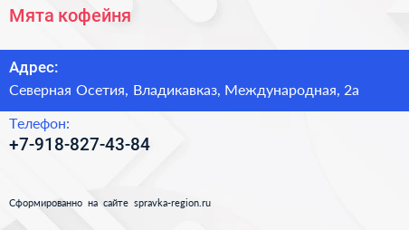 Мята, кофейня по адресу Северная Осетия, Владикавказ, Международная, 2а в дальнейшем Организация, размещена в следующих категориях: