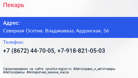 Пекарь по адресу Северная Осетия, Владикавказ, Ардонская, 56 в дальнейшем Организация, размещена в следующих категориях:
