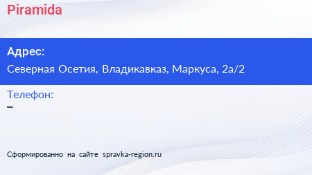 Piramida по адресу Северная Осетия, Владикавказ, Маркуса, 2а/2 в дальнейшем Организация, размещена в следующих категориях: