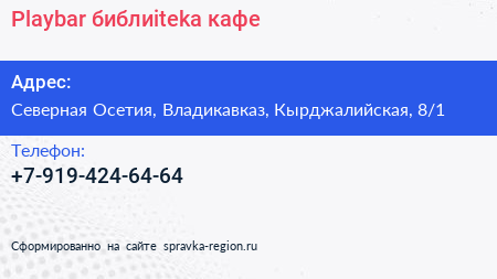 Playbar библиiteka, кафе по адресу Северная Осетия, Владикавказ, Кырджалийская, 8/1 в дальнейшем Организация, размещена в следующих категориях: