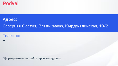 Podval по адресу Северная Осетия, Владикавказ, Кырджалийская, 10/2 в дальнейшем Организация, размещена в следующих категориях: