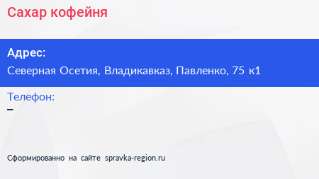 Сахар, кофейня по адресу Северная Осетия, Владикавказ, Павленко, 75 к1 в дальнейшем Организация, размещена в следующих категориях: