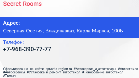 Secret Rooms по адресу Северная Осетия, Владикавказ, Карла Маркса, 100Б в дальнейшем Организация, размещена в следующих категориях: