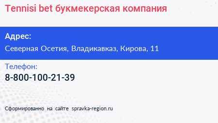 Tennisi bet, букмекерская компания по адресу Северная Осетия, Владикавказ, Кирова, 11 в дальнейшем Организация, размещена в следующих категориях:
