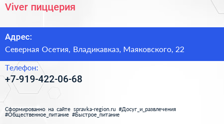 Viver, пиццерия по адресу Северная Осетия, Владикавказ, Маяковского, 22 в дальнейшем Организация, размещена в следующих категориях: