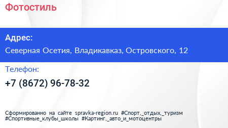 Фотостиль по адресу Северная Осетия, Владикавказ, Островского, 12 в дальнейшем Организация, размещена в следующих категориях: