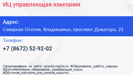 ИЦ, управляющая компания по адресу Северная Осетия, Владикавказ, проспект Доватора, 21 в дальнейшем Организация, размещена в следующих категориях: