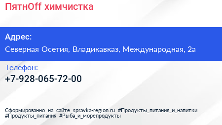 ПятнOff, химчистка по адресу Северная Осетия, Владикавказ, Международная, 2а в дальнейшем Организация, размещена в следующих категориях: